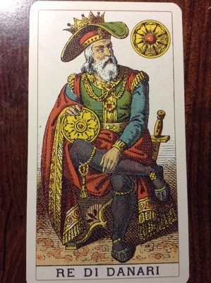 This King knows where to invest his money. He’s like the Warren Buffet of Tarot. The King is interested in physical things and building financial security. He likes to have a lot of money and have nice things, but he does not necessary go around spending much in general. He is a saver and a keen investor.